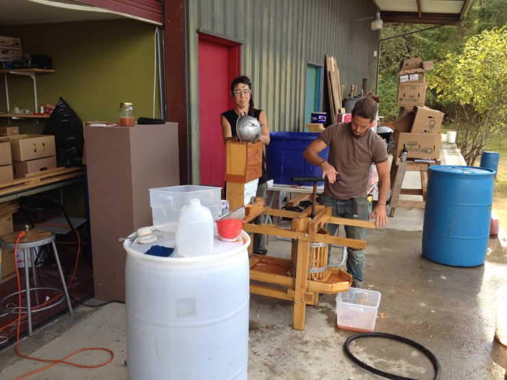 Levi & Ronni plan to make specialty vinegars at Taproot shared-use kitchen using apples they grow here on Lopez Island. We had a lot of fun today turning fresh local apples into delicious fresh apple cider that will soon be vinegar.