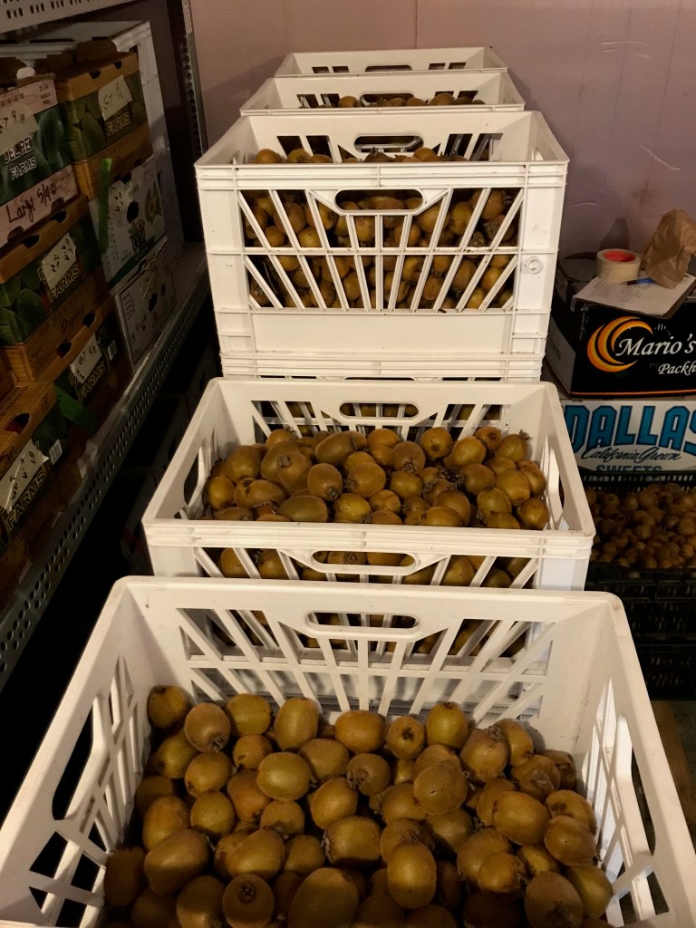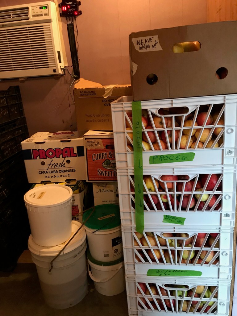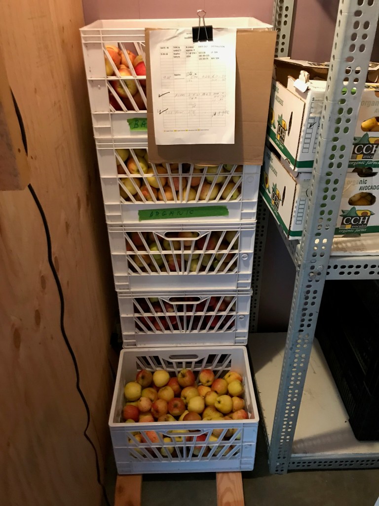 The CoolBot walk-in cooler has apples, pears, asian pears, buckets of pickles and a LOT of kiwi fruit. Some of this belongs to individuals but the vast bulk of fruit put into the CoolBot this season has been picked by the Lopez Island Gleaners. They’ve picked about 9,000 pounds of fruit so far this year!